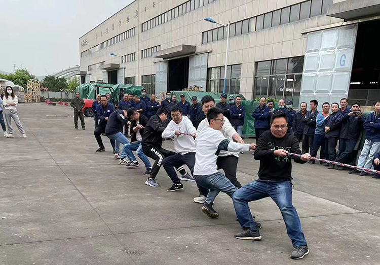 比賽以各部門(mén)為單位,每?jī)蓚€(gè)小組之間進(jìn)行淘汰賽。當(dāng)比賽開(kāi)始的哨聲響起,大家全都緊握繩子,憋足了勁把繩子往后拉。比賽過(guò)程中,各部門(mén)參賽隊(duì)員努力拼搏,無(wú)論是場(chǎng)上還是場(chǎng)下,氣氛都異常緊張,富有節(jié)奏感的“一二拉,一二拉”,還有加油聲,充斥在操場(chǎng)上空。尤其是在勝負(fù)難分的時(shí)刻,大家毫不退卻,咬緊牙關(guān),堅(jiān)持到底。